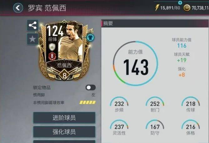 总的来说,这张范佩西给人的感觉跟克洛泽非常相似。虽然做为前场球员,他的身高没有特别高大,但是在具备头球能力和远射终结能力的同时,范佩西的盘带手感也非常灵活。虽然也有瑕疵,可就凭这更新频率,策划“亲儿子”无疑。