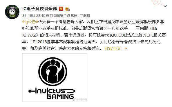 目前LPL赛区中最强的战队就是IG战队了,在整个夏季赛的比赛中IG战队仅仅只输了一场比赛,那就是LPL赛区中另一支强队RNG战队,但是在最近的比赛中也是成功复仇RNG战队。现在也是夏季赛积分榜中第一的战队,也是目前夏季赛夺冠概率最大的一支战队,不得不说现在的IG战队又有重大的消息在官博中爆料出来了。