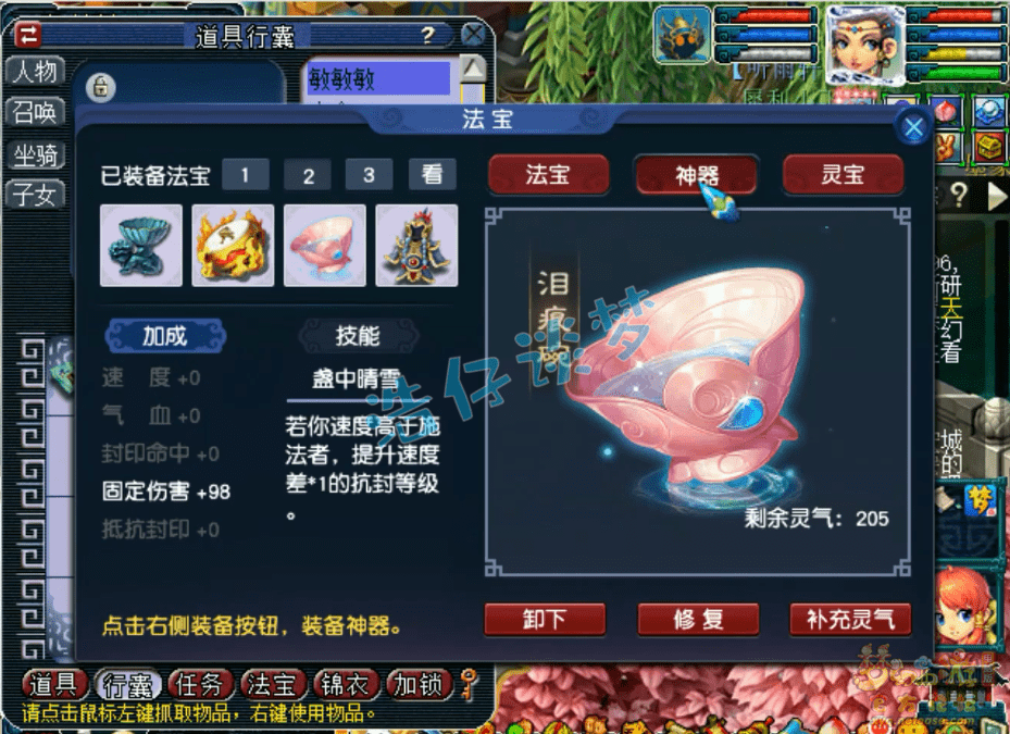 号上买来只带一只6技能须弥鬼将,对于这种极限固伤来说,应该换一只施法速度快的须弥。比如比较流行的如意仙子或者机关兽。