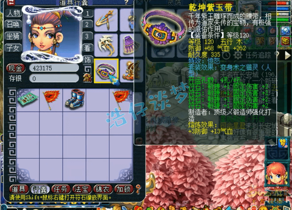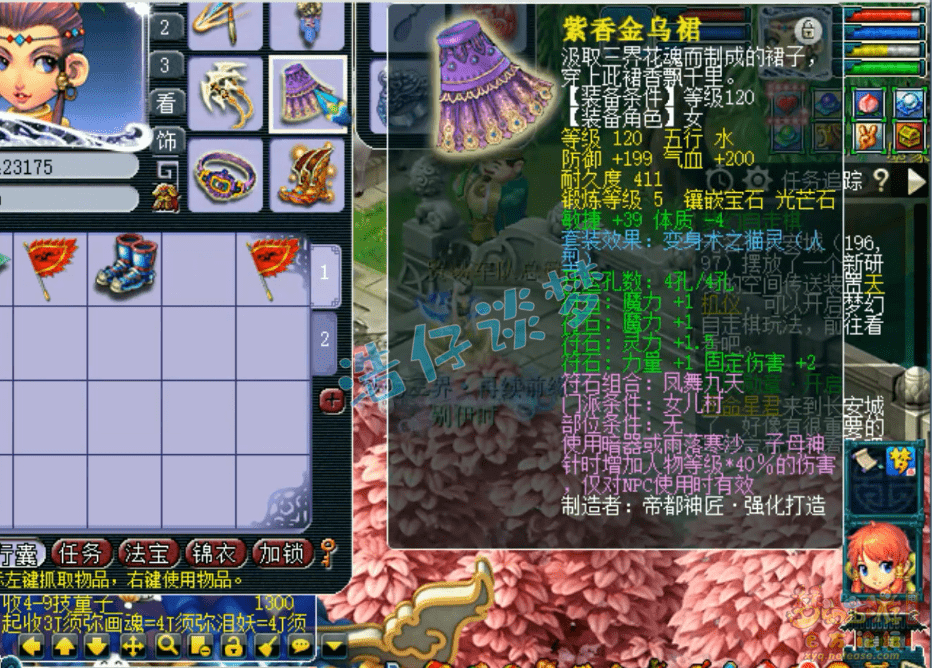 120级水清诀猫灵套女头,打了9锻月亮石,符石全是固伤和敏捷的。