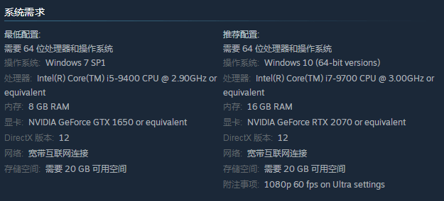 游戏对于电脑的配置要求并不算高,win7以上的系统就可以体验,具体配置要求如下: