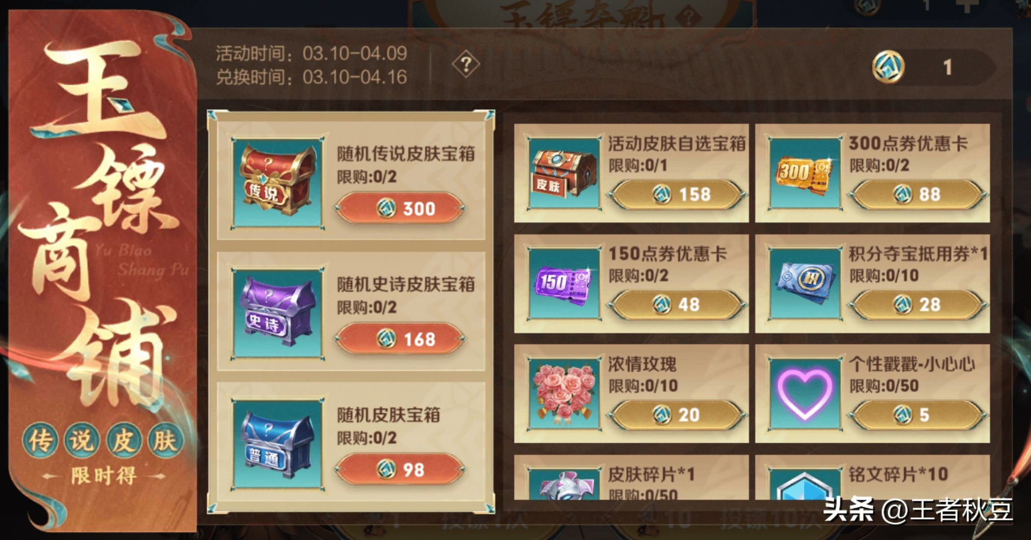 本期资讯秋豆就给大家带来玉镖夺魁的详细攻略,帮助大家清楚知道到底该不该抽?怎样抽才不亏,怎么才能抽到史诗和传说皮肤?