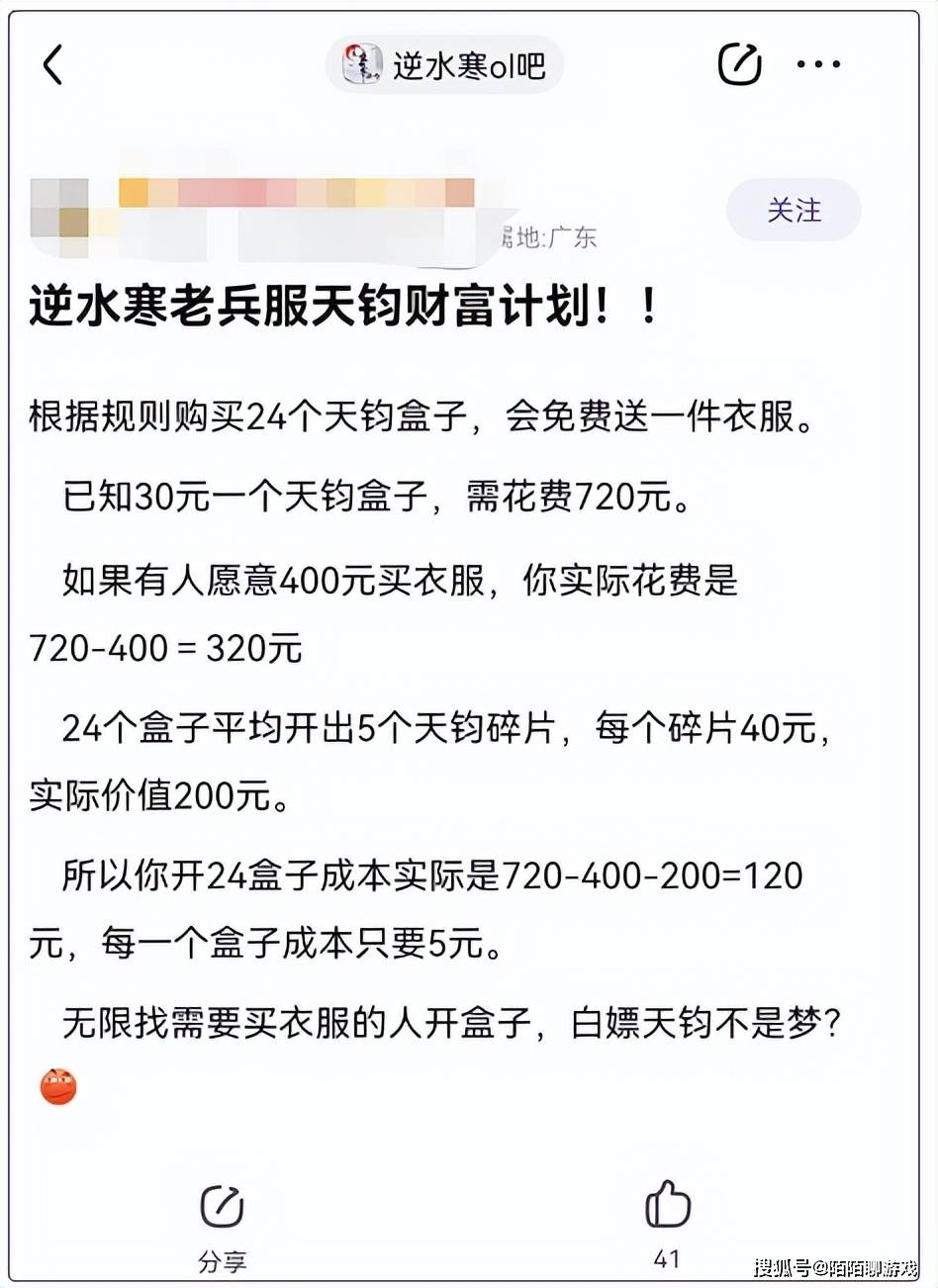 于是玩家算了一笔小账:如果找足够多的人来买衣服,四舍五入就等于白嫖衣服和天钧?
