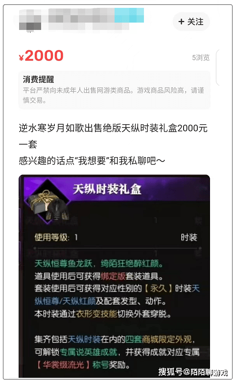 这就要说到老兵服的收费机制,因为这次除了外观和坐骑再无氪金点,因此在正式服火到不行的天纵时装,在老兵服以绝版的形式出现时,很多玩家就嗅出了商机。