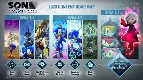 此前,《索尼克未知边境》曾公布了后续免费更新路线图,后续内容分为三个独立的更新,将在今年年不同时间陆续上线。根据图片显示,第一次更新将带来点唱机模式、拍照模式以及新挑战模式;第二次更新将新增开放区域挑战任务,索尼克周年庆祝内容,KOKO生物;第三次更新将引入新的可玩角色和新的故事内容。