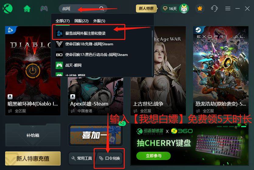 第三步:搜索点击暴雪战网,点击加速