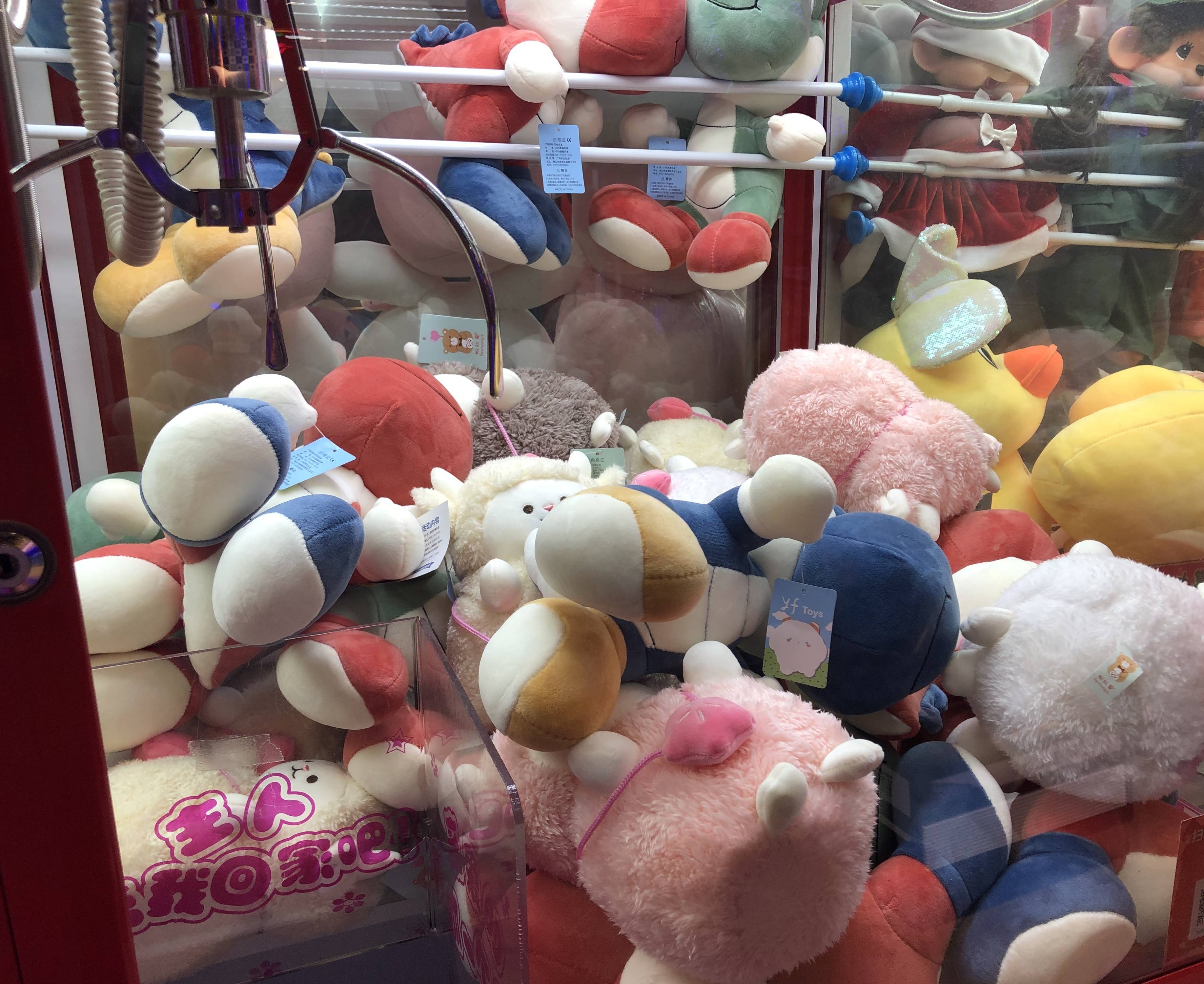 3、抓娃娃机:又称为抓烟机,抓娃娃机是一种通过投硬币或游戏币,利用自身所带的爪子,抓取里面所放物品的玩具。