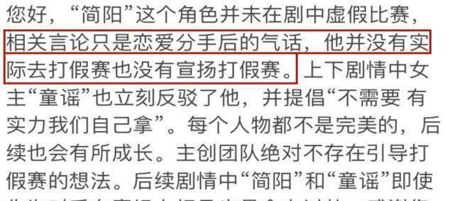 作品中出现的大量名场面,包括对电竞的蔑视,以及最后男配角像“演员”一样的发言,是让电竞圈内人士感到愤怒的主要原因。这不仅体现了对电竞精神的不重视,也误导了那些不懂电竞的人。如果官方直接说这是因为原著角色设计的问题,官方无法更改,那么玩家们也会表示理解,但官方称这是男配的发言愤怒。这样的言论,让玩家们对正版电视剧的态度更加的嚣张了。