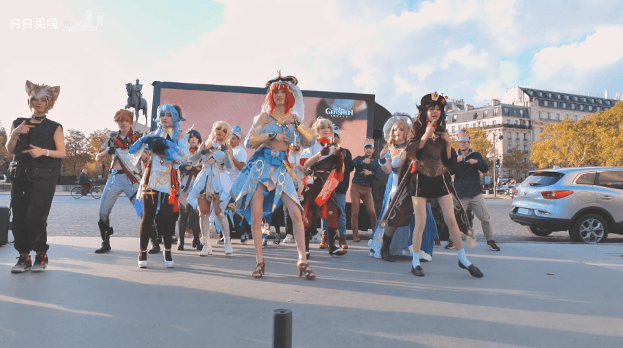 当然了,《原神》的文化输出不仅如此,就连时尚圣地巴黎,也少不了《原神》的身影。在巴黎进行的《原神》快闪活动中,许多海外玩家纷纷COS成自己喜欢的角色,在广场上随着音乐舞动,有些玩家甚至能用汉语说一些游戏台词,也是很用心了。