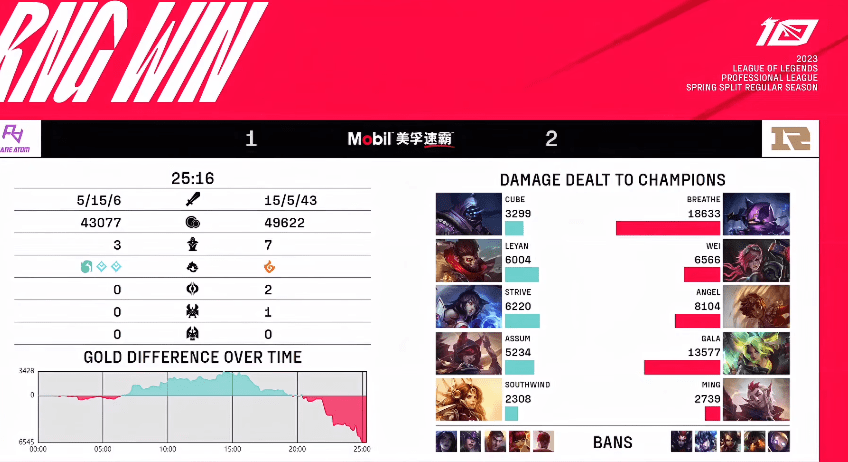 看到赛后采访的对象,各位也知道胜负了,恭喜RNG,完成了自我救赎,RA则是失去了季后赛名额争夺资格,WE和IG,看WE能不能自我救赎了。