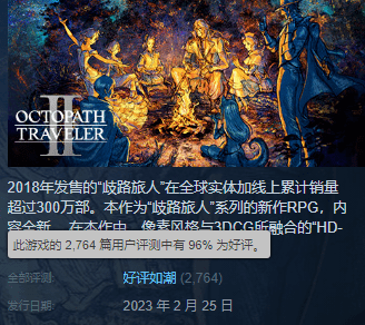 但令我没想到的是,八方2这部无人看好的四平八稳的续作,于发售后的一个月时间内在各大论坛收获了好评无数:Steam 96%好评率、豆瓣9.3分、平日里不怎么待见初代八方的NGA老哥给出了9.7分,海外用户数量相对较多的游戏论坛Backloggd也打出了4.4/5的高分……不管怎么看,这次的八方2都算是口碑大好。
