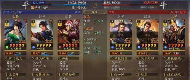 下文会给出每个武将的常用战法,兵书选择,以及组合在一起的不同效果,大家玩的时候可以根据自己战法库的情况来自由搭配出属于自己的新三势关妹