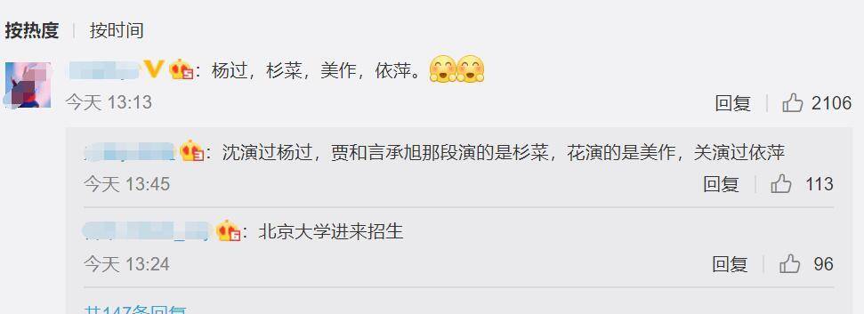 在评论区,有网友给出了“杨过、杉菜、美座、一平”的答案,“沉演杨过,贾和言承旭演杉菜,华演梅座,关演一平”,你怎么看这个答案?你还有其他合理的解释吗?如果真的是和第四季一样的阵容,那么至少收视不用担心,因为关晓彤和华晨宇聚集的粉丝还是会全力支持的。我相信他们会用最好的状态来挽回观众。.
