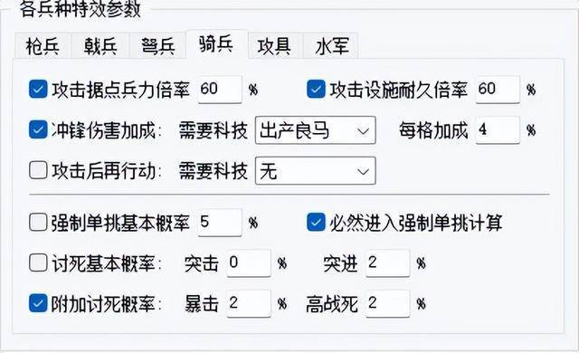 不要以为这就完了,因为即便是没有这个效果,在默认有了“出产良马”科技之后,骑兵在攻击前每多移动一格,伤害也能增加4%。再有了这个效果,就是9%了,吓不吓人?