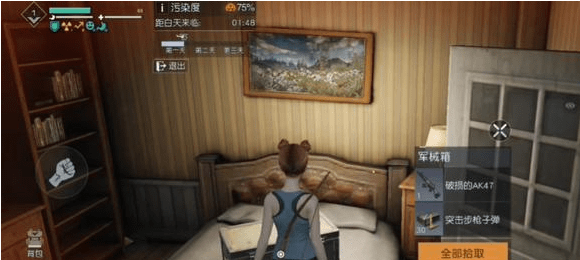 5.最后一个枪械箱就在撤离点上,在撤离点对面的大厅里。里面是AK47与30发子弹。最后提醒下玩家第三晚可以在工厂那边度过,也可以在多兰小镇度过,如果在多兰小镇度过,就要在天亮前两三分钟向工厂奔跑过去,不然后果很严重的。
