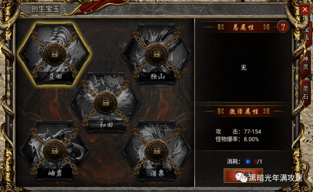 以上就是黑暗光年游戏中创生宝玉的玩法攻略,希望能给大家带来帮助!更多游戏攻略、游戏礼包尽在【黑暗光年满攻速】哟!