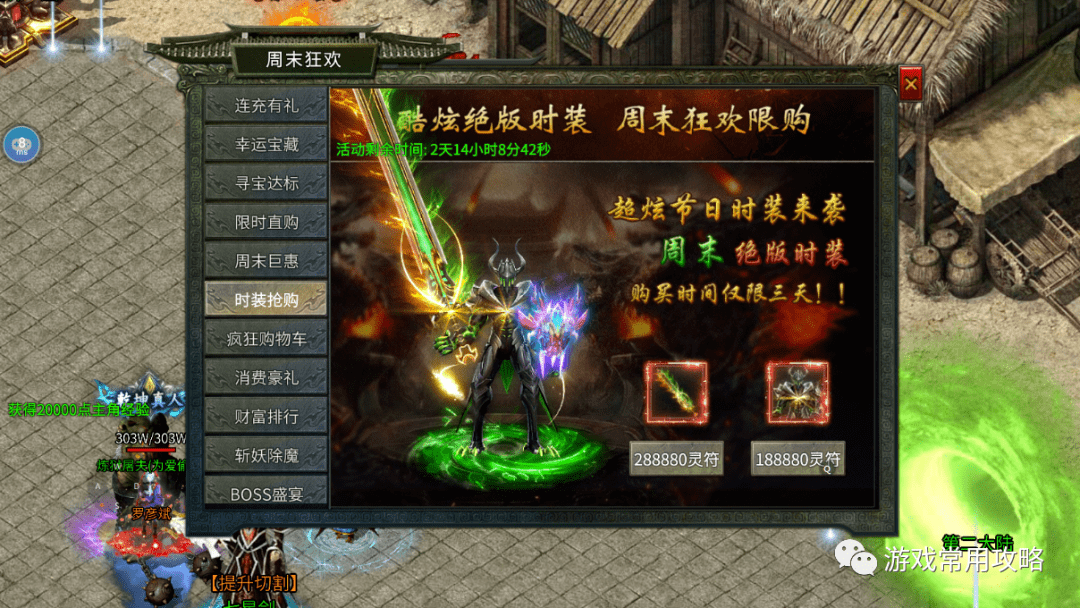 绝版时装:这个可以获得两件时装,量子长剑属性:魔法值+300000,攻击+20000,PK伤害加成1%。古武异能者的属性也是一样的。