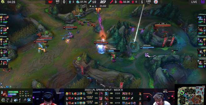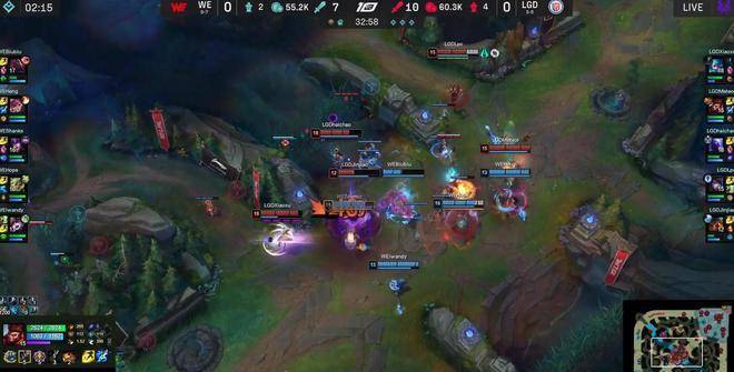 但阵容打龙的速度有点慢,蔚进场抢下大龙,蛇女复活TP到正面后,LGD只能作鸟兽散,被WE打出1换3的完胜抢走大龙,经济瞬间拉开到8K。