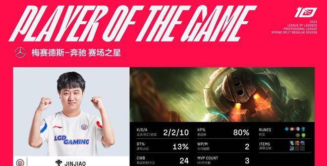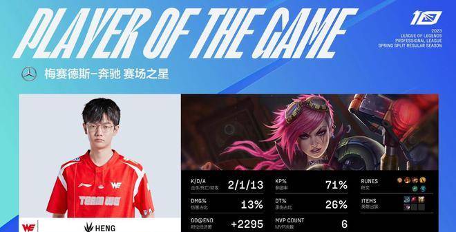MVP给到了Heng的蔚,前中期帮助队伍掌控节奏,后期也有关键的抢大龙,浇灭了LGD翻盘的希望。