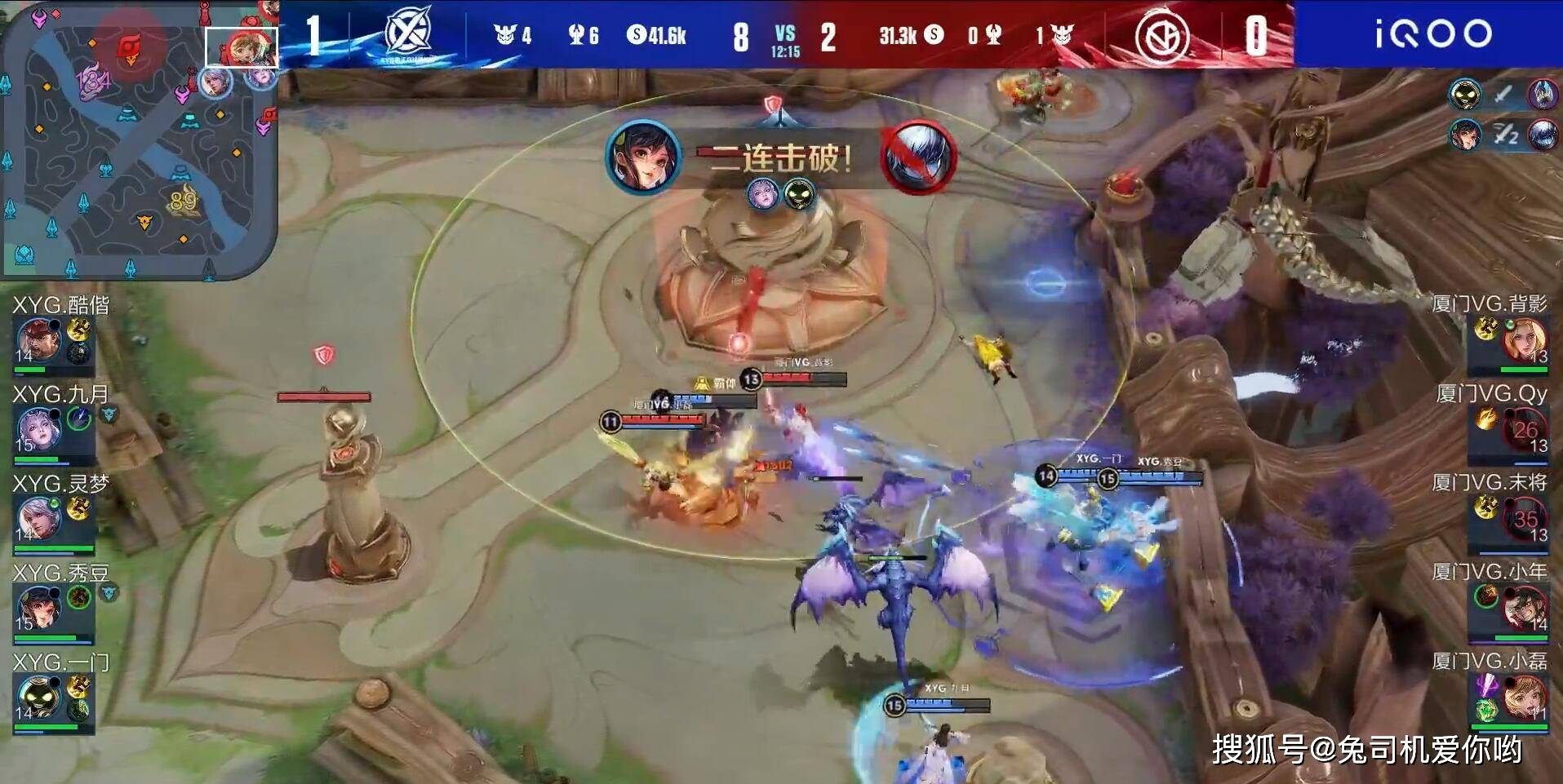 同时我们也可以看到,厦门VG在这场比赛当中的英雄选择,也存在一定的问题。在赛点局红色方握有counter位的情况下,没有ban掉狄仁杰强行拿出来李元芳,结果被秀豆的狄仁杰压得生活不能自理。当场的解说都表示,六分钟被推上高地,这一局小年的李元芳打得真是相当难受。