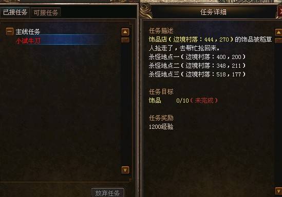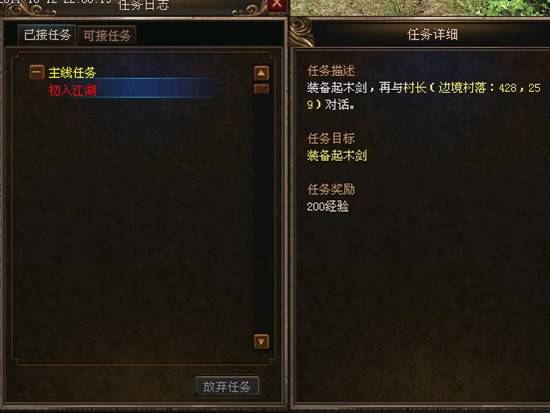 按快捷键D打开任务界面,接第一个主线任务:初入江湖。