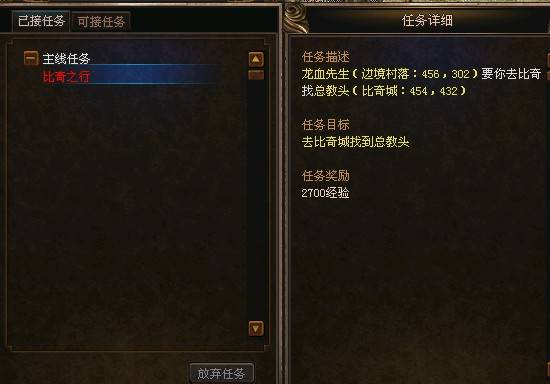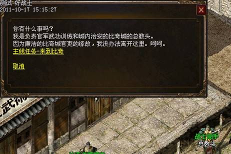 受战士高手NPC总教头的委托, 去找比奇巨商王大人。然后开启你的玛法新征程吧!