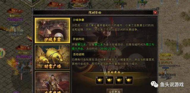 大家好,我是鱼头!上一期给大家介绍了《盟重英雄之龙城天下》打米攻略,这一期咱们就说说这款手游(沙巴克)争夺,一起体验速度速度与激情吧!