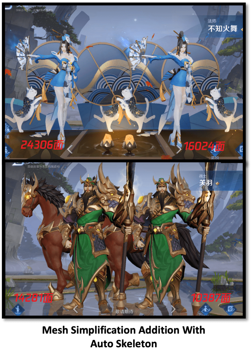 此外,天美工作室引擎负责人表示,其团队通过自研的高效渲染器等,实现了智能一站式复杂材质拟合优化,自动蒙皮,模型简化等众多功能,使得《王者荣耀》游戏里的角色、环境等“资产”,可以更快、更好、更便捷地被运用。凭借这一技术的突破,于3月8日在巴西上线的《Honor of Kings》便首次应用了该管线,巴西玩家即便在1.3 GHz四核处理器和1gb RAM的低端基线设备上,也能够在保证优秀画面品质的情况下流畅体验游戏。