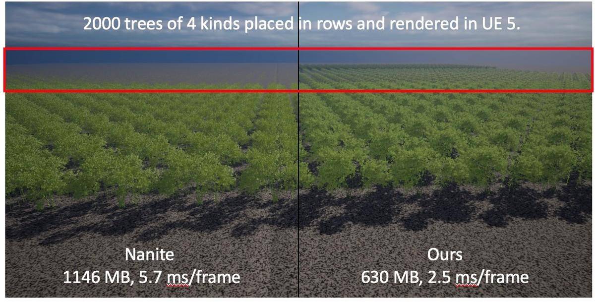 为了让玩家获得更沉浸的游戏体验,游戏开发者不会放过“一草一木”。START像素实验室的资深研究员分享了全新的大规模森林实时渲染技术——BroadLeaf。BroadLeaf有着高达100倍以上的数据压缩率,独创的数据组织方式能平均减少渲染70%左右冗余面片,比目前市面上的技术更为高效和准确,使得创作者能够不受精度和规模限制的使用植被来丰富环境设定。