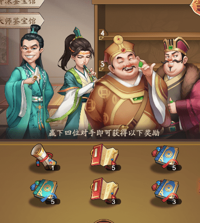 这个是参与次数会获得奖励的,第一个是入门鉴宝馆参与鉴宝可以获得的奖励,里面的奖励都是一样的可以获得资质经验手册和商贾便揽,都是随机门客用的一些道具的,参与的次数到底就可以获得,越到后面的奖励越丰富。