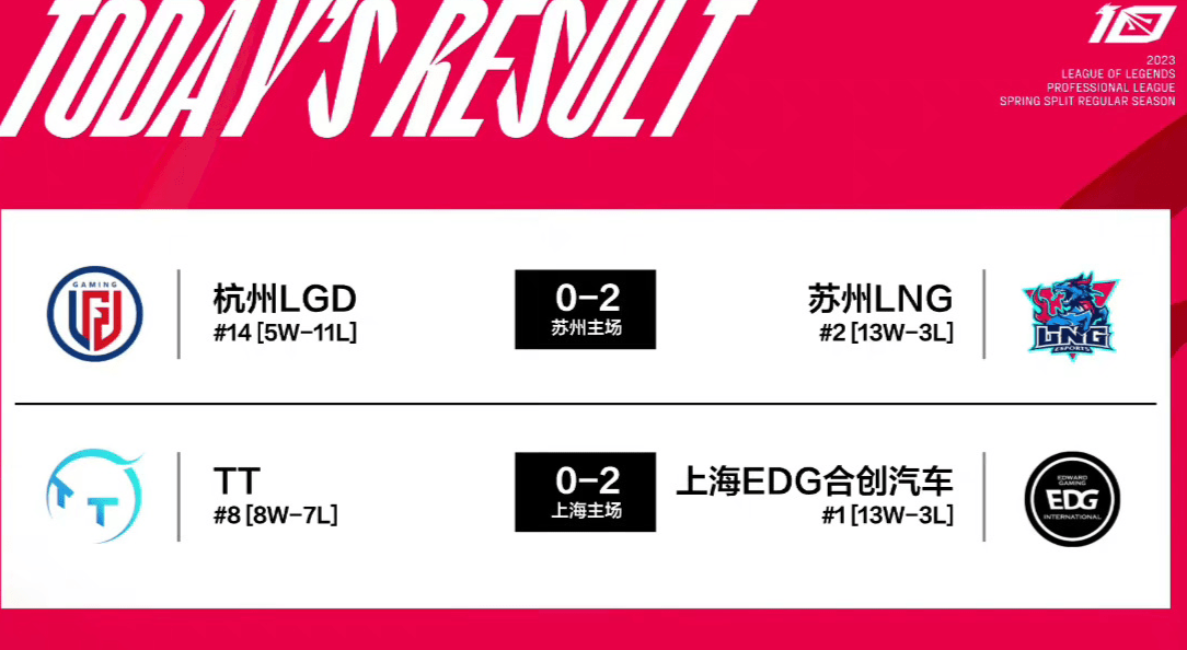为了复活甲的资格,LNG和EDG在对战LGD和TT期间,都拿出了自己最佳竞技水准,干脆利落的结束比赛,双方都打出2比0的赛果。