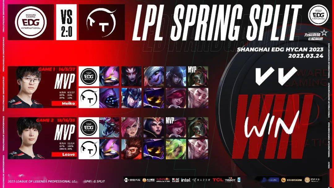 恭喜上海EDG合创汽车成功取得本场比赛的胜利,春季常规赛圆满收官!同时也恭喜骑士们有惊无险地取得了季后赛复活甲,希望骑士们能够继续努力,打出更多更好的发挥,我们季后赛见!
