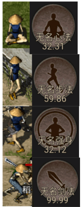 例如:玩家熟知的一层武学无名剑法练满可以提供6.02点元气,而二层武学不羁浪人剑法练满则可以提供19.25点元气。