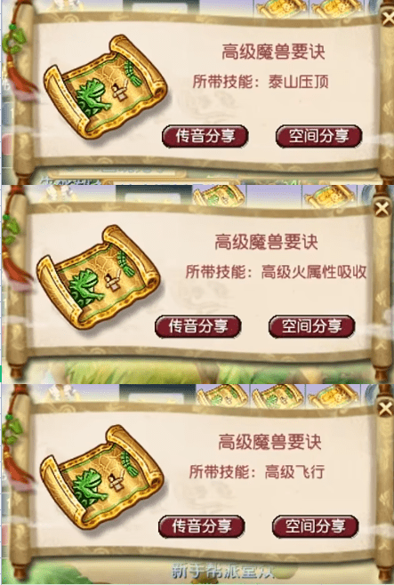 建邺城挖到了泰山压顶、朱紫国挖到了高级火属性吸收、傲来国挖到了高级飞行!这3本高级魔兽要诀所携带的技能,不仅避开了热门技能,而且也避开了场景所能挖到最好的高级魔兽要诀。哎,心疼玩家。