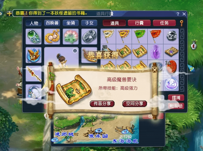 玩家第1波一共挖了9张高级藏宝图,虽然挖到了4本高级魔兽要诀。但是,其携带的技能有些差强人意。于是玩家又挖了9张高级藏宝图,没想到开始就迎来了热门高兽诀二连击!
