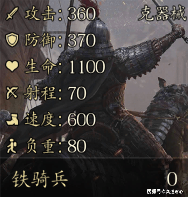 铁骑兵(攻360、防370、命1100、射70、速600、负80)