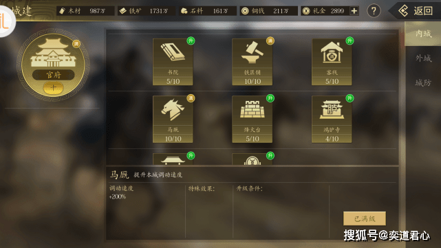一:把官府升到满十级,只有这样,才能让其他功能建筑也具备升到满级的资格。