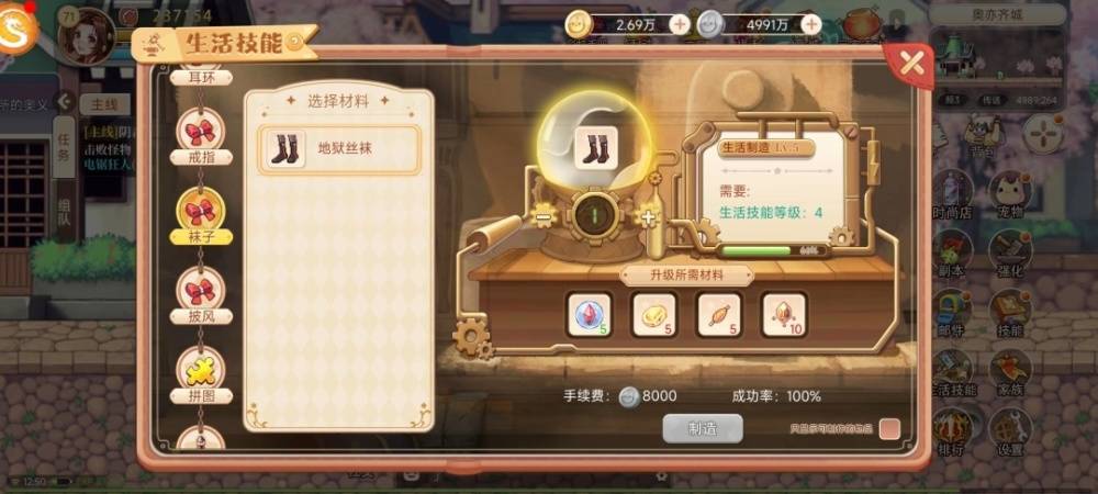 2.地狱丝袜:袜子模具*5、炼金金块*5、金色细丝*5、金芒的魂晶*10