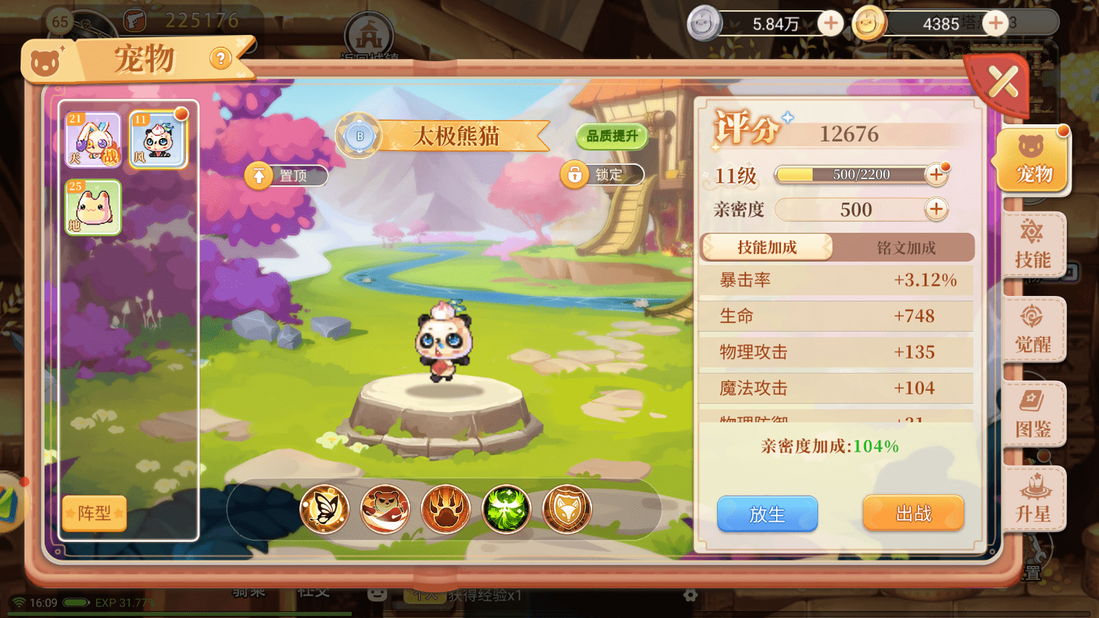 当我们的冒险日记等级达到30星的时候可以获得一只B级的太极熊猫,相对于龙猫妹妹的三个技能,太极熊猫可以学习四个,强力了不少。