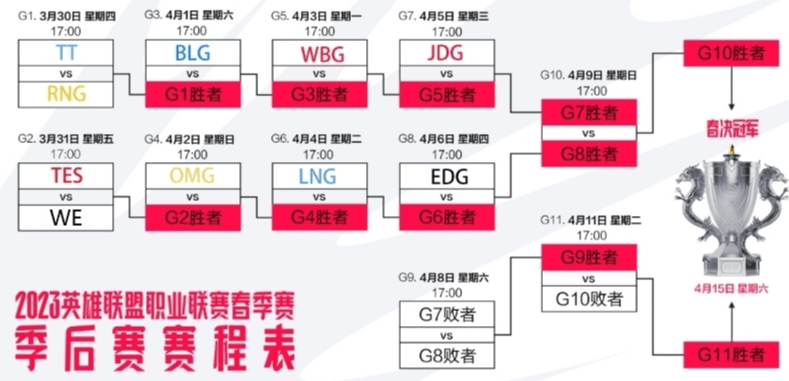 近日,2023LPL春季赛常规赛迎来了WBG与RA的收官之战。从WBG的战绩与积分情况来看,他们只需要拿下一局的小场胜利便能够成功锁定常规赛第四名的成绩。而就在刚结束不久的第二局比赛中,WBG凭借着小虎妖姬的四杀成功拿下了一小局。至此,2023LPL春季赛季后赛的完整赛程也已经出炉。