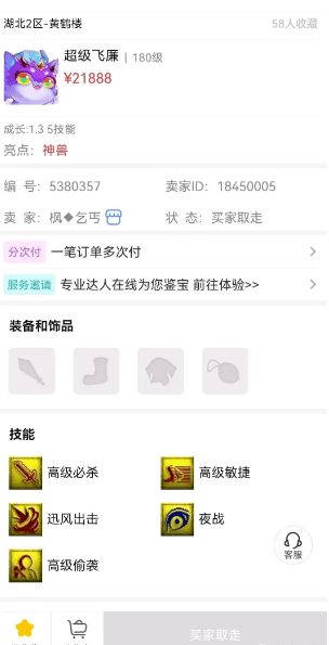 前段时间,超级飞廉凭借特殊技能成功出圈,成为了除超级鲲鹏之外最贵的神兽。再加上这种神兽不能通过神兜兜指定兑换,所以在保有量一定的情况下,售卖价格就如同坐了火箭一般扶摇直上。近日,满级超级飞廉的成交价格已经来到了21888元,已经达到2只超级神狗的水平。