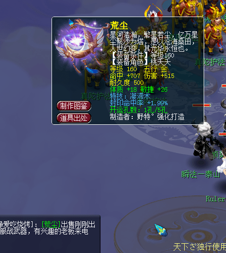 虽然梧桐在3月的接连翻车,但运气还是在的。今日凌晨,他就帮一位老板喜提了一件140级初伤500、初总伤675,单加30点耐力的无级别武器。这种武器不仅适配高端大唐官府用,凌波城、花果山、天机城等强势物理门派使用也毫无问题。单就价值来说,老板靠着这把无级别武器,今天应该算是小赚一笔了!