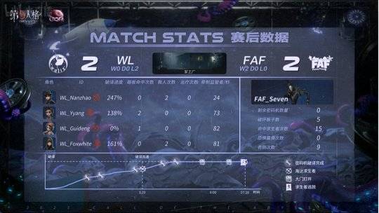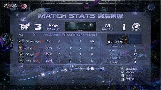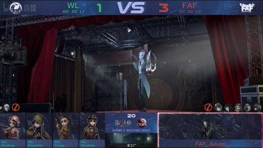 WL的求生者选择了舞女、佣兵、魔术师、空军(BAN隐士);FAF的监管者Seven选择了“杰克”。(BAN昆虫学者、先知、杂技演员、古董商、勘探员)