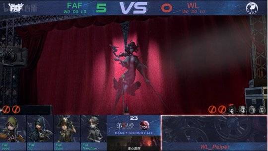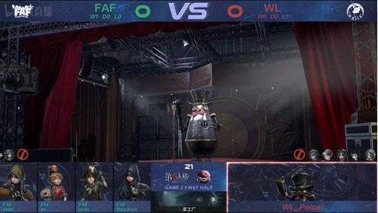 WL的求生者选择了前锋、舞女、杂技演员、入殓师;FAF的监管者ALi0306选择了邦邦。(BAN祭司、佣兵、大副、先知)