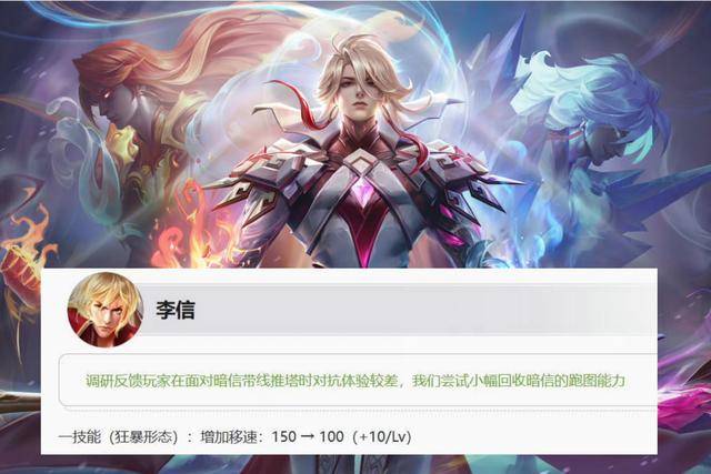 李信狂暴状态下一技能加速效果削弱。