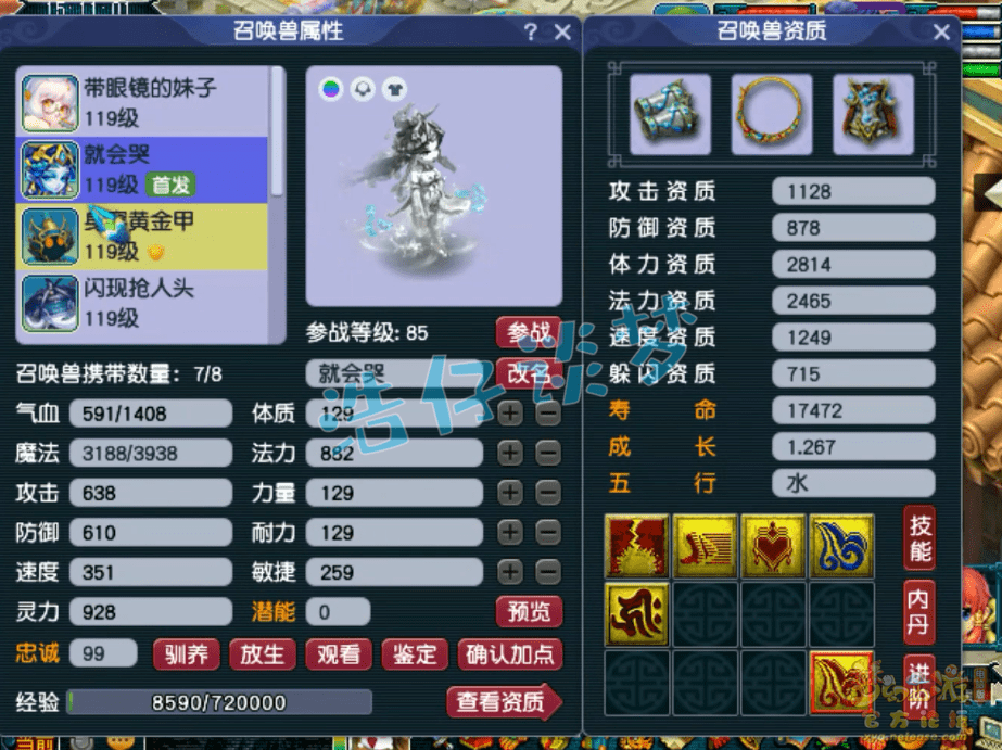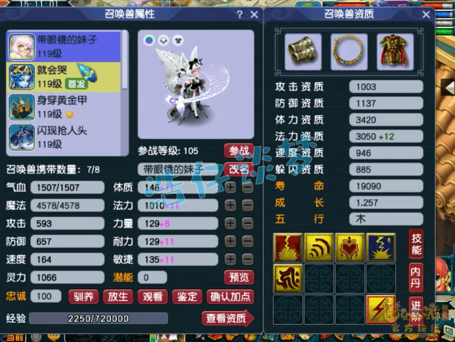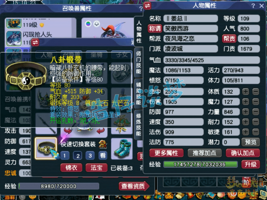 号是109级的凌波城,这是仅打了一张120多伤害符的面板属性,跟之前看到的,动辄2300伤害的109物理系还是有点差距的。不过即使是这样的属性,照样玩得舒服!