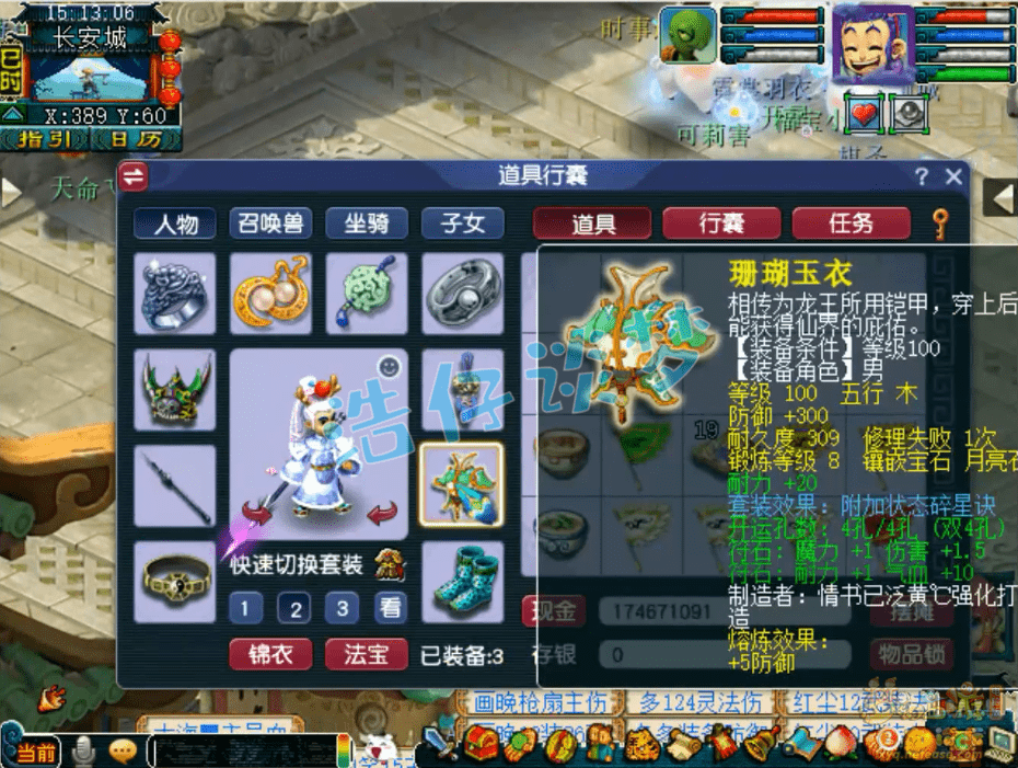 好了,这个109级凌波城展示完毕,装备和宝宝可以看得出来,老板在尽最大的努力提升自己。不得不说他这身搭配还是比较不错的,低端任务肯定不在话下。高端任务临时符打满,再有几个给力的队友,照样不在话下!这个号让我看到了平民的倔强,只要用心打造,没有什么不可能!