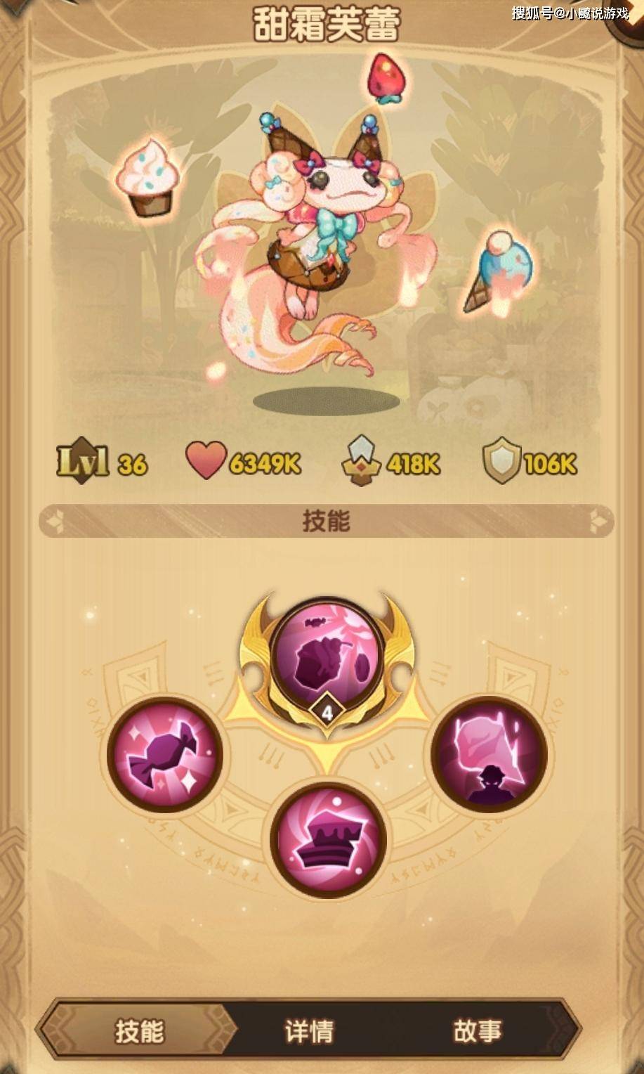 以上就是新灵宠的能力,甜霜芙蕾的核心服务就是英雄们的能量条。”至尊服务“,关于能量回复可以给予多100点能量回复,可以清除你身上针对能量的异常状态,对待变形的目标,无论成功都会提伤降昉。普通服务,就只有6级的能力,对待敌人,变形打击,能量回复150点。