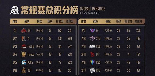 总积分榜单上NH以321分的总分高居第一,当然这主要得益于第一周他们碾压级别的夺冠,第一周周决便收获了150分,早早和身后队伍拉开差距,后面两周虽然没有再次夺得周冠,但也始终保持在积分榜前列,这样NH将带着32分进入季后赛。
