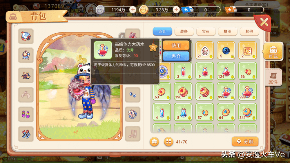 然后就是手游有一个保护状态,在自动挂机按钮旁边有一个小药瓶,长按进去之后可以设置在战斗中主动使用药剂恢复自身的状态,药水现阶段就买那个高级恢复药水即可。